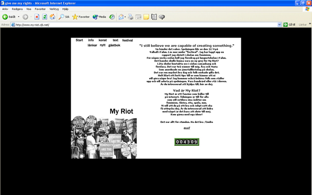 Tack vare min pappa så har jag fått några gamla mappar skickade till mig. I dem hittade jag bland annat den här skärmdumpen. Det är en version av fanzinet My Riot. Ibland är minnet bättre än verkligheten, men det är kul att det fanns kvar. Räkneverket – en tidsmarkör.
