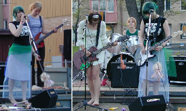 utrustningen var inte den bästa så det lät kanske inte så bra. fattades 1 puka & 1 cymbal, virrveln va sönder, oskar fick ström av micken, förstärkarna la av lite när dom ville. lisa hörde ingenting av de andra. and so on….