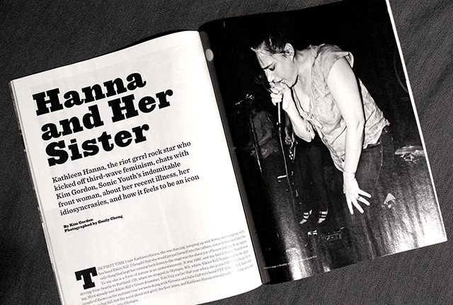 Intervjun handlar om rejält tunga saker, som Kathleen Hannas sjukdom, hur hon var övertygad om att hon var på väg att dö och känslan av ansvar över att skriva sin egen livshistoria innan det är försent, och är förmodligen den mest personligt uttömmande jag någonsin läst med henne. Ett måste, läs den här.