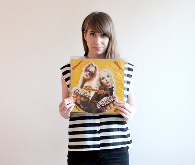 Picturedisc OCH figurskuren vinyl – peppen som min inre kitschfantast känner inför den här skivan är närmast gränslös. Som köpt för £1 kvalar den eventuellt in som mitt bästa skivfynd någonsin dessutom – vinylsingeln Girl power av brittiska 90-talsduon Shampoo.