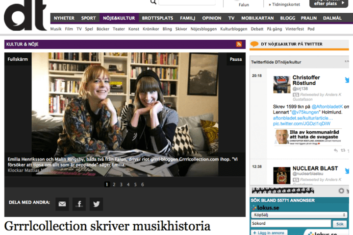 I Sverige var Riot Grrrl-rörelsen en mycket aktiv och levande undergroundrörelse, men är idag bortglömd i historieskrivningen. Det menar Malin Ringsby och Emilia Henriksson som därför startade bloggprojektet Grrrl Collection. Nu vill de rätta till historien och dokumentera och berätta om sin rörelse.”