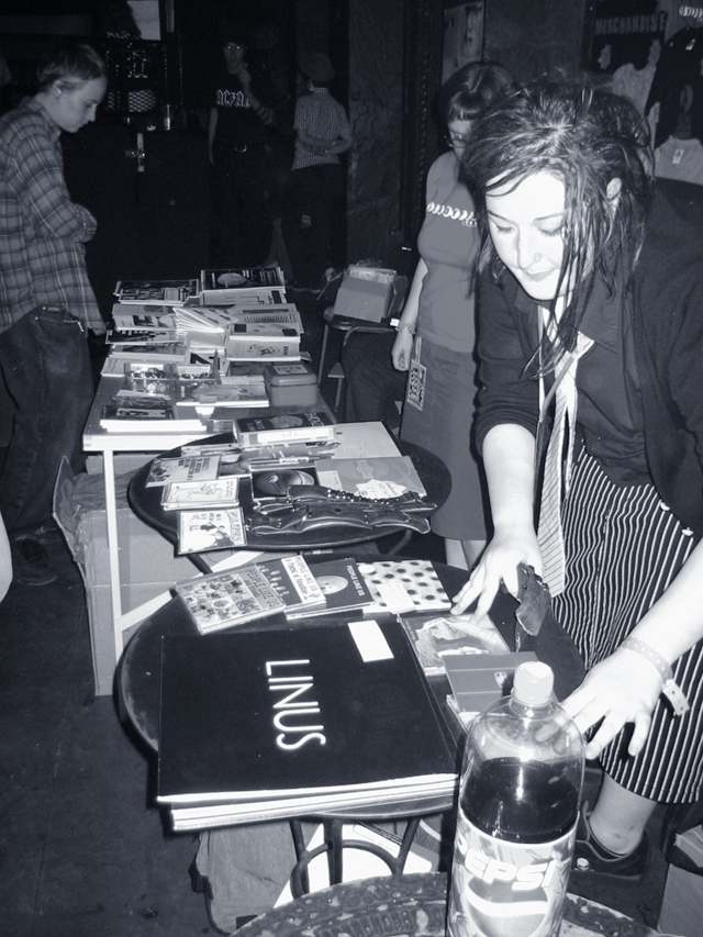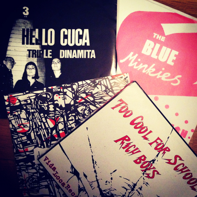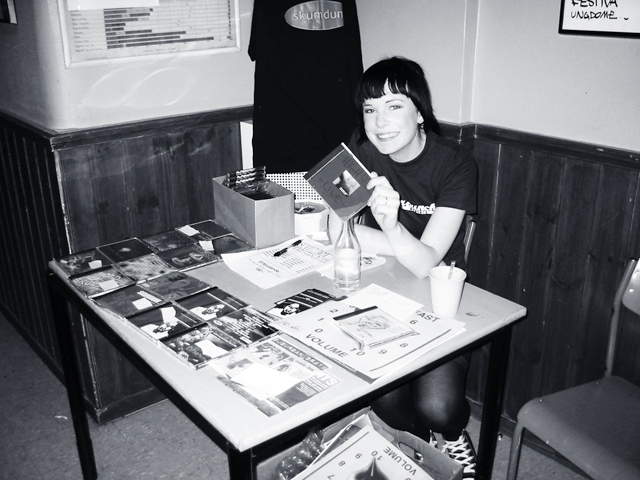 När jag och Malin åkte till Ladyfest tog vi med oss våra bands demos. Både banden och distrofolket bytte skivor med varandra. Det var en öppnare stämning än vad jag tidigare upplevt på en spelning. Lite mer: gå fram till en okänd person och säga ”Hey wanna trade?”. Jag bytte till mig: Hello Cuca (Spanien), Too Cool For School (Italien), Deathcheck (Tyskland) och Blue Minkies (England).