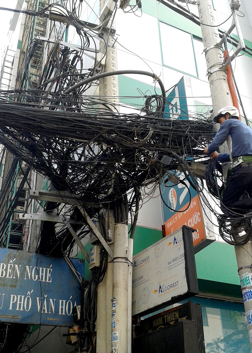 Saigon är en stad med mycket kontraster. Precis bredvid ett superlyxigt hotell kan det sitta en tant i stråhatt som lagar mat på ett slags spritkök på trottoaren. Några meter bort sitter det kanske en man i en plaststol som blir rakad på gammaldags sätt med rakkniv. Elledningarna hänger helt utan skydd och trasslar ihop sig i stora klumpar vid lyktstolparna. Vissa kablar (ibland avklippta) hänger ned så att man kan slå i huvudet i dem. Det är tydligen inte ovanligt med strömavbrott. Undrar varför?!