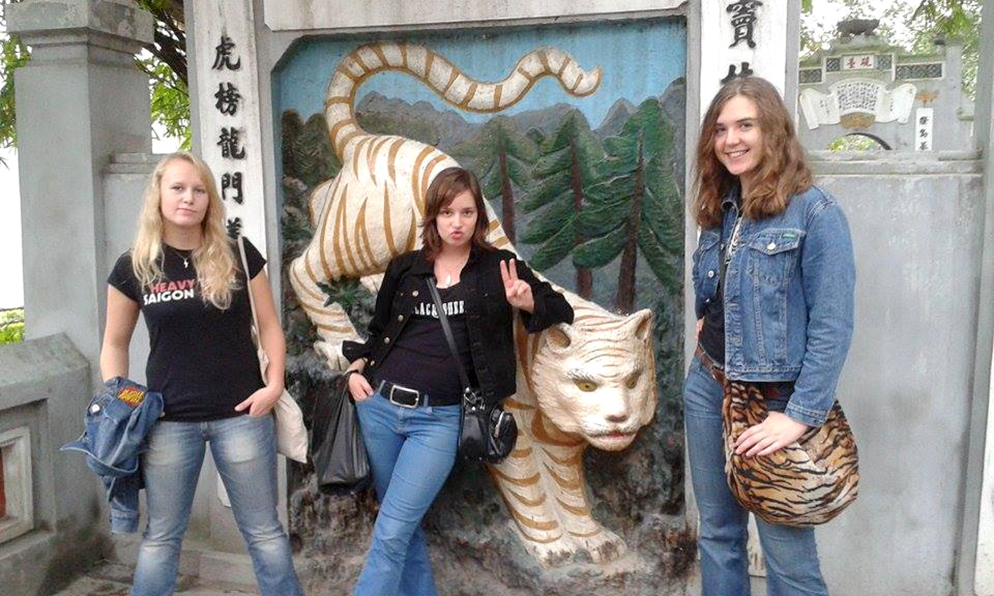 So.. That’s it. Our 4 week long world tour is soon to be over. Last night we did the last show of the tour, at Hanoi Rock City in Hanoi. Both gigs in Vietnam turned out great. To play our song Saigon Kiss in Saigon felt really awesome! This is one of the most exhausting and exciting things we have ever done. It’s been damn hard and fuckin awesome! We have seen so many new things and met so many new people. We have been to three new countries that we’ve never been to before, and so so many new cities. We’ve had the opportunity to spend so much time on our music. We are very content about the past month but now it feels great that we’re going home. However, we have 5 flights to catch before we get home. Our trip goes from Hanoi via Saigon and Tokyo to Stockholm. Plus two quick stops in Taipei and Beijing. When this is over, we’ve taken 12 flights in 4 weeks all together (sorry Mother Earth). Our butts hurt from all the traveling. Our bellies are round from all the carbs. Our bodies are near collapse and we can’t think straight. But we’ve had such a good time and played kick ass rock n roll shows in front of cheering crowds. We’ve struggled on through illness. We are very happy about our achievements and proud that we’ve done this so well. Go tigers! We want to thank everyone that has been a part of this tour! Risking to forget someone, we’d like to thank Dany Torres aka Microsurco who booked our shows in Spain and Portugal and the show in Spanish national tv (watch it here), Spiritual Beast who released our record in Japan and brought us to Tokyo to play at their really cool festival, Fio who brought us to Vietnam and made it possible to play in Saigon during our Saigon Kiss tour (epic!), Juha the tour manager and all the venues that let us go crazy on their stages. But most of all, we’d like to thank all the cool people who supported us by showing up at our gigs and purchasing our merch. We couldn’t have done it without you! A huge thank you to Grrrlcollection for this cooperation with the tour blog!