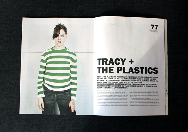 I morse startade jag dagen med att gå igenom lite gamla tidningar. I ett nummer av min gamla favorittidning SEX (nummer två, från 2002, för att vara exakt) hittade jag den här intervjun med Wynne Greenwood om hennes band/konstprojekt Tracy + the Plastics. Ett sånt där band jag har lyssnat en del på men nästan glömt bort – fint med en påminnelse!